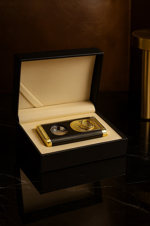Emperor Luxe is the lighter for those who want to stand out. Exclusive black and gold metal finish, powerful triple flame and built-in cigar cutter — all in one luxurious package. Feel the power in your hand every time you light the flame.
